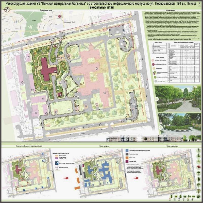 В рамках концепции проекта планируется задействовать земельный участок на территории Пинской центральной больницы. К существующему зданию медучреждения пристроят инфекционный корпус на 80 коек.