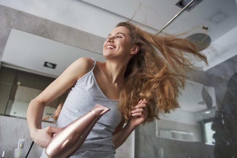 Раньше фены не регулировали температуру: воздух нагревался до 100 °C и обжигал волосы почти так же, как плойка. Особенно страдали пряди, которые долго находились под прямым потоком воздуха: они пересушивались, становились жесткими, теряли эластичность. Горячий воздух раскрывал чешуйки кутикулы, нарушал защитный слой волоса и буквально выпаривал влагу из его структуры.