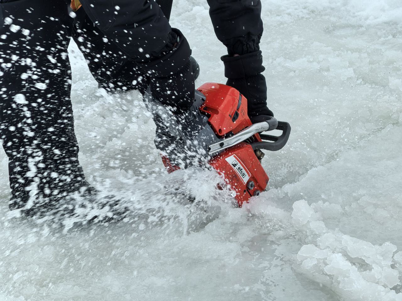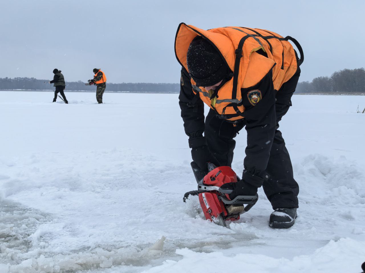 Представители инспекций природных ресурсов и охраны животного мира, управления по сельскому хозяйству и сотрудники РОЧС объединились ради общего дела: они прорубают лунки, наполняют их камышом — природными «трубками», через которые под лёд поступает кислород.