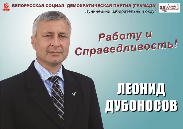 Леонид Дубоносов родился в Микашевичах (Лунинецкий район)в марте 1971 года. Более 20 лет проработал на РУП «Гранит». В 2013 году уволен из-за отказа выйти из независимой профсоюзной организации предприятия. Следом уволили и жену активиста, Елену Дубоносову.