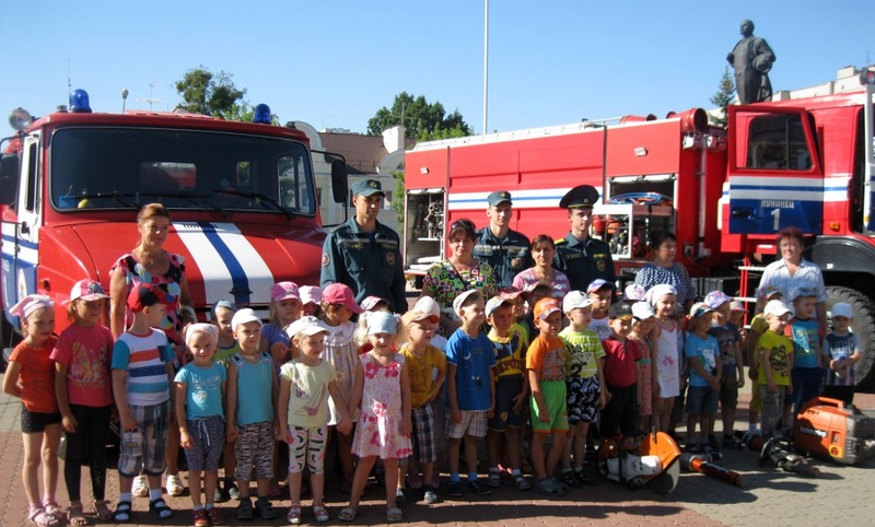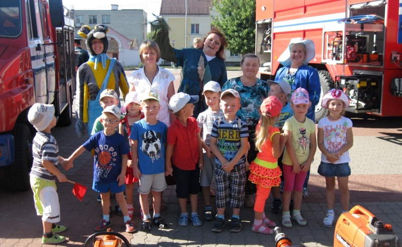 Посмотреть на спецтехнику РОЧС пришли воспитанники из детских садов №3, №1, №9 и №12. Однако, помимо боевых машин, малышей ожидала встреча со сказочными персонажами – Кикиморой, Водяным и Мышонком. В игровой форме они напомнили, как нужно вести себя при ЧП, а также показали малышам, что имеется в пожарном автомобиле.