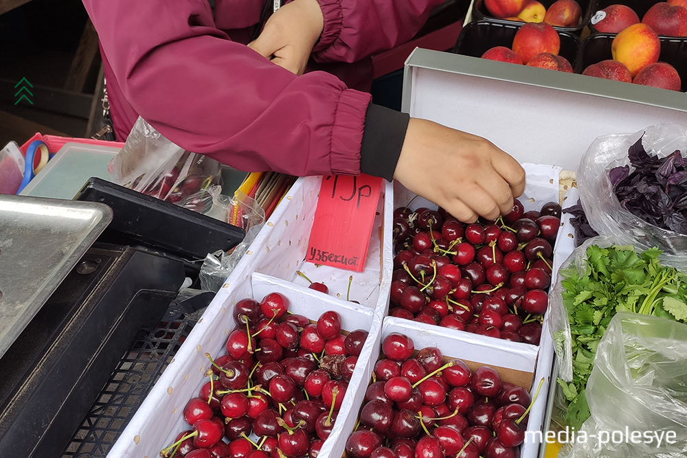 На рынке кроме клубники стали продавать и другие ягоды. Черешня нынче стоит 19 рублей. Можно найти даже голубику. В единственном павильоне ягода стоила 40 рублей за килограмм.