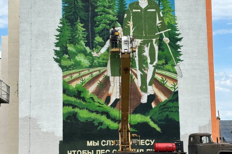 По инициативе и при финансовой поддержке Пинского лесхоза изображение на стену дома нанес гомельский художник Артем Сороколетов.