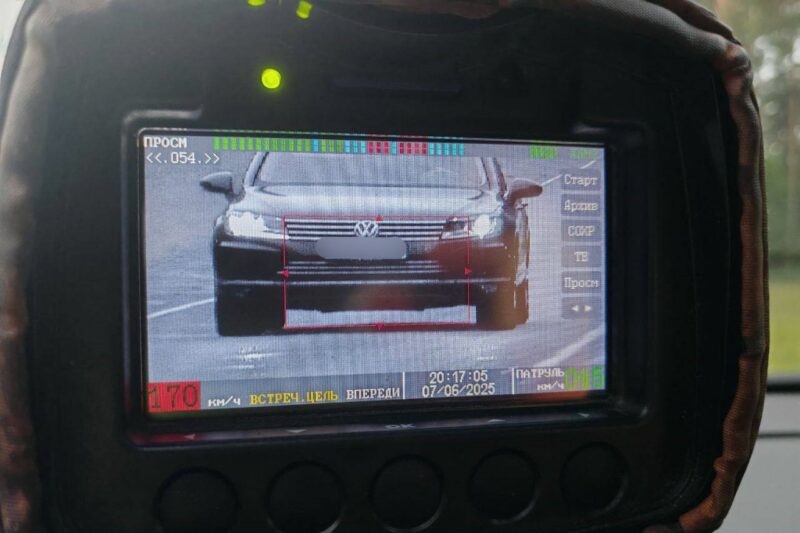 На автодороге Р-6 «Ивацевичи–Пинск–Столин» сотрудники ГАИ зафиксировали грубое превышение скорости, которое стало очевидным даже без радара — водитель Volkswagen мчался навстречу патрульной машине на скорости 170 км/ч при разрешённых 90.
