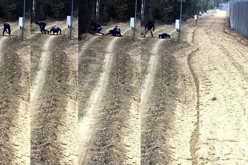 Литовские пограничники задержали на границе с Беларусью 30 нелегалов, которые вылезали из подкопа на границе — видео