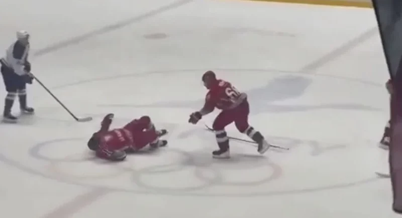 Вчера во время хоккейного матча хоккеист под номером 68, под которым играет бывший сборник Ярослав Чуприс. Он случайно спиной сбил Лукашенко, который стоял на льду в центре площадки.