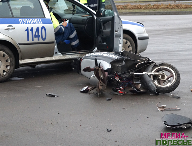 «Столкновение  произошло в 15.20 на перекрёстке улиц Восточная-Октябрьская-Машерова, — рассказал Медиа-Полесью инспектор ДПС ОГАИ Лунинецкого РОВД Сергей Антонович. — Двигаясь по улице Восточной, микроавтобус под управлением 36-летнего лунинчанина, не уступил дорогу выезжавшему с Октябрьской мопедисту, 26-летнему жителю Лунинца. Техника получила мехповреждения, люди, к счастью, не пострадали».