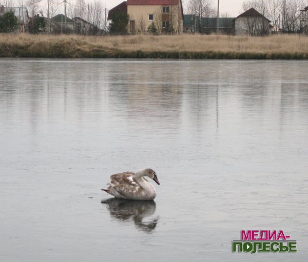 «Вода покрылась коркой льда, и птица примёрзла, не могла двигаться», — рассказал Медиа-Полесью заместитель начальника Лунинецкого райотдела по ЧС Сергей Колесниченко, участвовавший в «операции» по освобождению лебедя из ледяного плена.