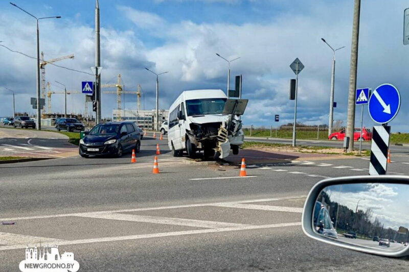 На этом островке безопасности по неизвестной причине водитель буса не вписался в поворот. Машина вылетела на тротуар, врезалась в один из светофоров и буквально повисла на столбе.