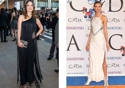 Звезда сериала «Доктор Хаус» Оливия Уайлд в начале апреля родила сына от актера Джейсона Судейкиса и, судя по выбору наряда для CFDA, еще не вернулась в прежнюю форму. Оливия пришла на церемонию в длинном черном платье на одно плечо, «украшенном» редкой бахромой, в которой все время запутывался клатч актрисы. Жаль, что до выхода на красную дорожку Уайлд никто не сказал, что такой наряд к высокой моде отношения явно не имеет.