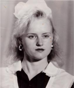 Моя мама, Людмила Андреевна Миронович, работает в РайЦГиЭ, закончила школу в 1987 году в д. Городная Столинского района: «Выпускной, конечно, это волнение, — делится мама воспоминаниями. — В то время всё было совсем по-другому. Раньше никто не задавался целью поехать куда-то далеко, чтобы что-то выбрать, поэтому старший брат сшил нам с сестрой–двойняшкой одинаковые платья серого цвета, а туфли я купила в магазине в своей деревне. Сделала завивку. Тогда о наращивании ногтей никто не знал, поэтому ногти я накрасила сама. Надела клипсы и кольца. Красились тушью и помадой белорусской фирмы «Белор–Дизайн». Ещё у меня была косметика фирмы «Пупа». А также духи – фирмы «Дзинтарс» и «Красная Москва».