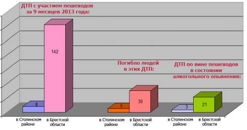 Так, с начала года в Столинском районе произошло 8 ДТП с участием пешеходов, трое из которых находились в состоянии алкогольного опьянения. 5 человек в результате этих ДТП погибли. В 6 случаях эти аварии произошли в тёмноё время суток.