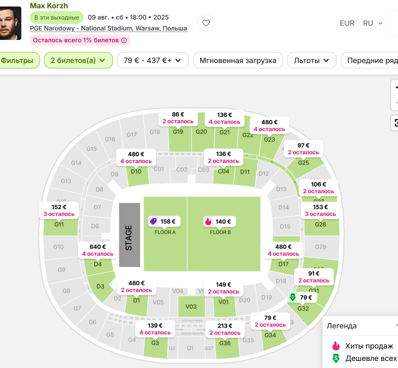 Для сравнения: в 2019 году на стадионе «Динамо»в Минске Корж собрал 30 тысяч зрителей.