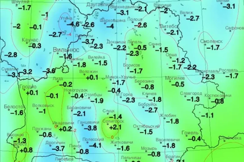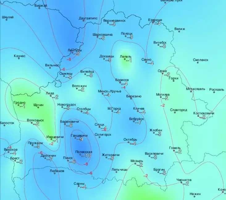На востоке Беларуси, в городе Мстиславле, ночью даже образовался временный снежный покров высотой 1 см. Снег выпадал ночью также в Витебске.