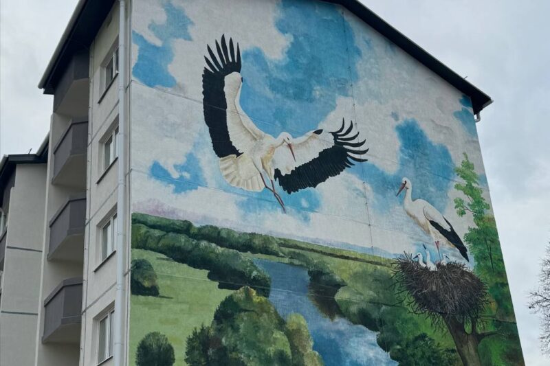 На стене многоквартирного жилого дома рядом с гимназией появился великолепный мурал.