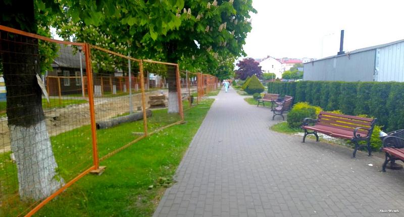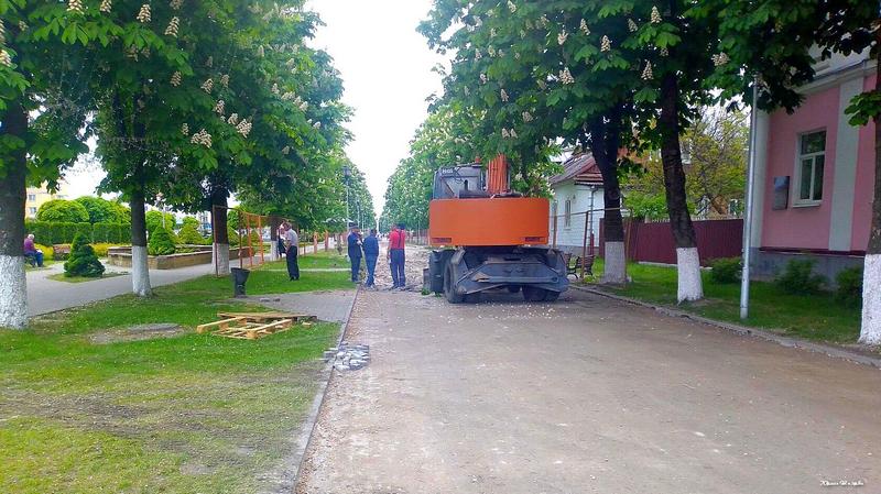В историческом центре Пинска начался ремонт. Рабочие сняли асфальт с пешеходной дорожки на улице Первомайской. Будут прокладывать трубы.