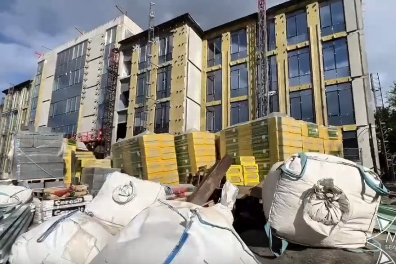 На стройке в Минске обрушилась мобильная платформа с рабочими — видео