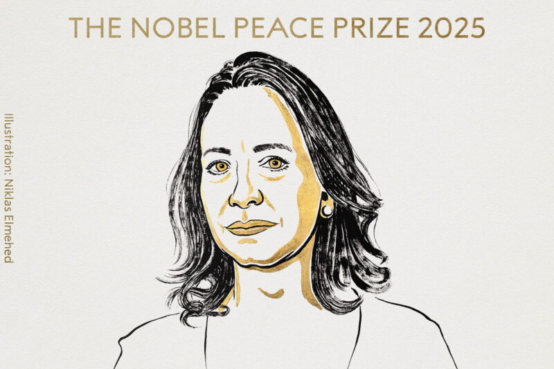 Нобелевская премия мира 2025 года присуждена лидеру венесуэльской оппозиции Марии Корине Мачадо «за ее неустанную работу по продвижению демократических прав народа Венесуэлы и за ее борьбу за справедливый и мирный переход от диктатуры к демократии».