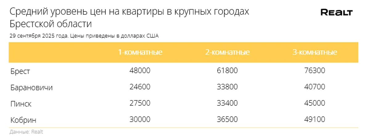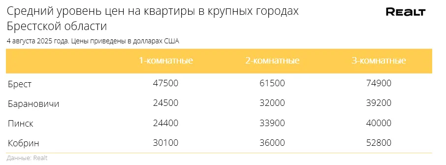 В Пинске квартиры продавались в среднем за 670 $/м2 (+1.8% за неделю). Для сравнения: в июле стоимость метра квадратного в Пинске и Лунинце составляла 743 $/м2, а в августе 645 $/м2.