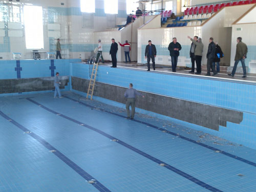 Кстати, точно такая же проблема еще в прошлом году обнаружилась и в малой чаше бассейна. Там подрядчики сделали гарантийный ремонт за свой счет. Строители утверждают, что всему виной некачественная гидроизоляция, которую им поставили немецкие партнеры, — этим составом покрывают чашу бассейна, чтобы сверху класть плитку. Сейчас в бассейне идет ремонт, а руководство подсчитывает убытки.