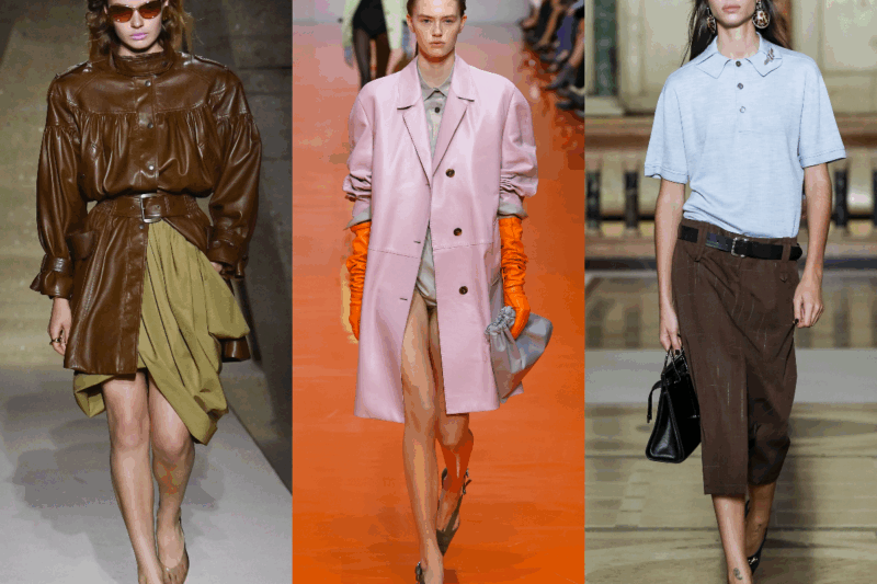 Такие сочетания выглядят как стилизованный кадр с показа Prada SS’26, особенно если добавить игру фактур: розовый шелк с оранжевой кожей или твидовая юбка с хлопковой рубашкой.
