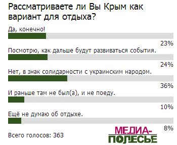 Наибольшее количество респондентов- 36% — ответили, что в Крым не поедут в знак солидарности с украинским народом.