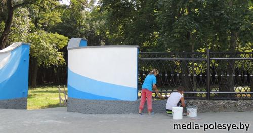 Примечательно, что не только остановочные пункты вблизи комплекса, но и ворота в парк «Маньковичи» со стороны ФСК, а также забор напротив комплекса окрашены в белый и голубой цвет – задумка дизайнеров. Кстати,  разработкой проекта физкультурно-оздоровительного комплекса занималась проектная организация Институт КПОС ОАО «Брестпроект».