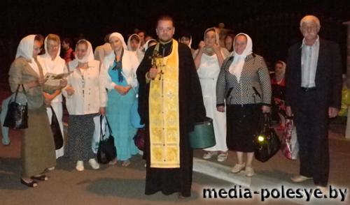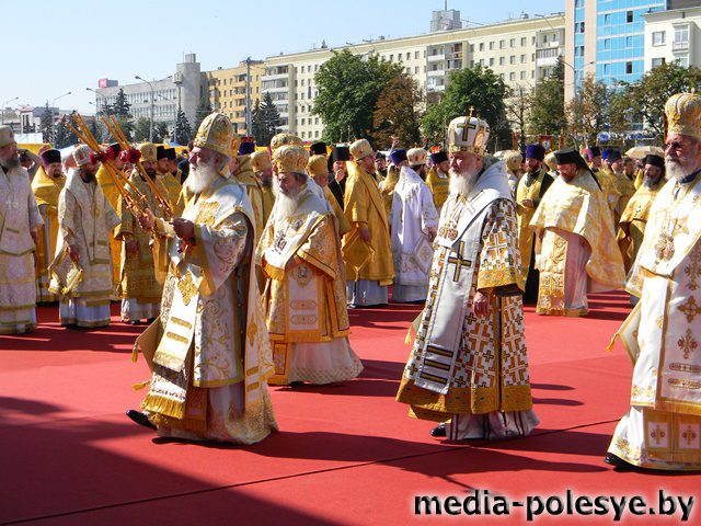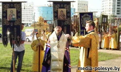 Перед Божественной Литургией викарий минской епархии епископ Вениамин совершил молебен на начало крестного хода и, вместе со всеми приезжими паломниками, отправился к месту служения торжественной праздничной Божественной Литургии.