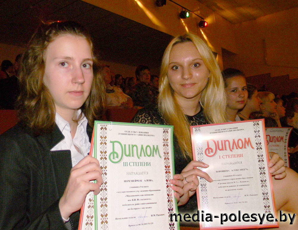 В нынешнем учебном году юные лунинчане стали обладателями двадцати трёх дипломов областных олимпиад, трёх дипломов заключительного этапа республиканских олимпиад и одного диплома Международной олимпиады экологических проектов. Напомним, что золото из Баку привезла учащаяся лицея Кристина Невдах.