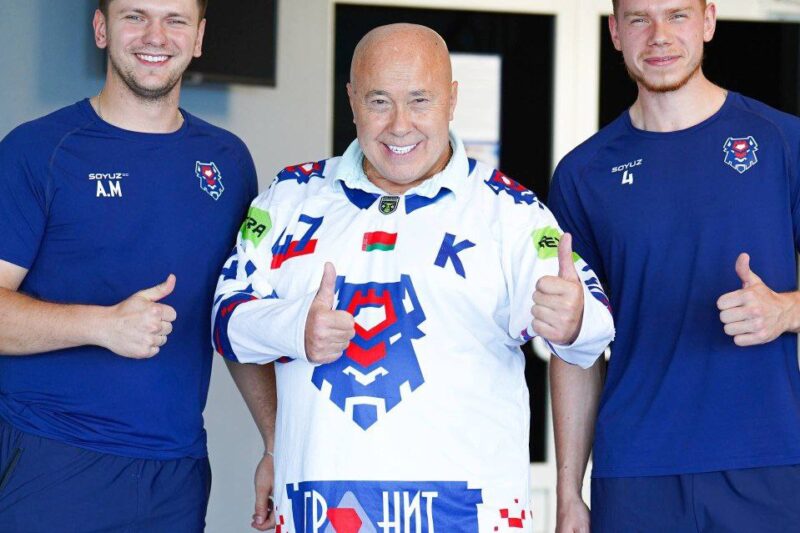 Фото Солодухи в джерси ХК «Брест» и с «зубрами» выложили в Брестском телеграме. Майку украшает логотип спонсора — Микашевичского РУПП «Гранит».