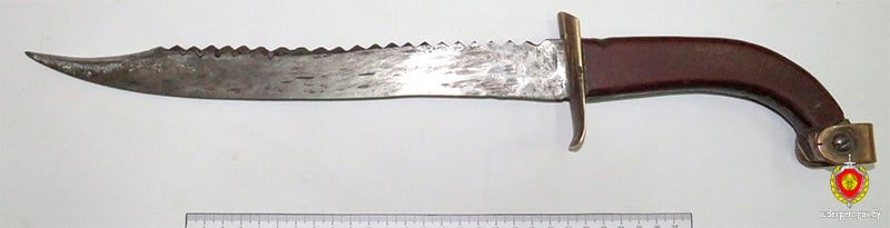 При осмотре его вещей был обнаружен нож, который был изъят и направлен в Пинский межрайотдел ГКСЭ для проведения судебной экспертизы холодного и метательного оружия.