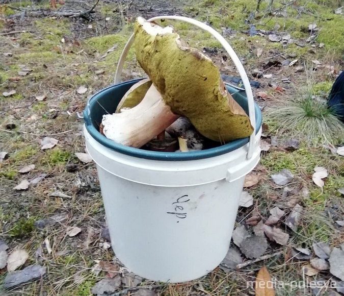 9 ноября Медиа-Полесье рассказывало о том, что Александр Зыщик из Лунинца нашел в лесу белый гриб весом 1,2 кг. Его шляпка накрыла 10-литровое ведро, словно крышка.