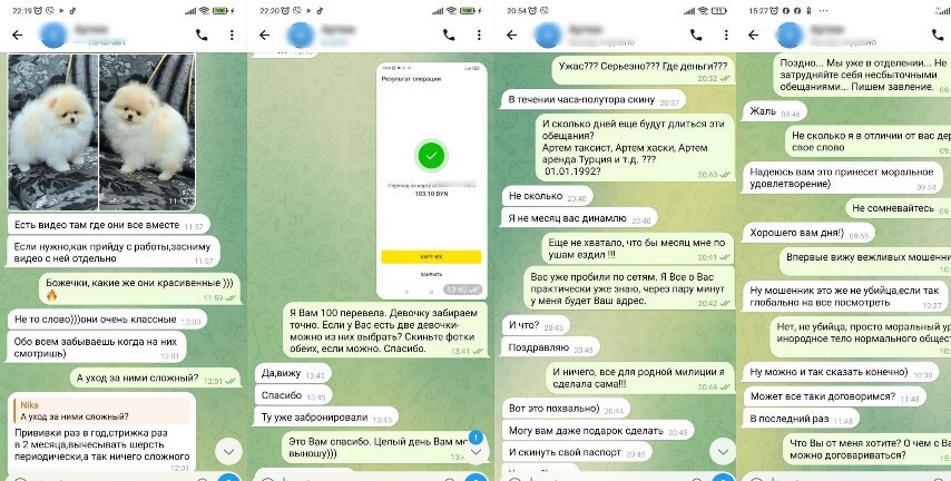 Продавец вел активную переписку в мессенджере, высылал фотографии и видео животных. В качестве аргументов использовались обещания бесплатной доставки и рассказы о высоком спросе на щенков.