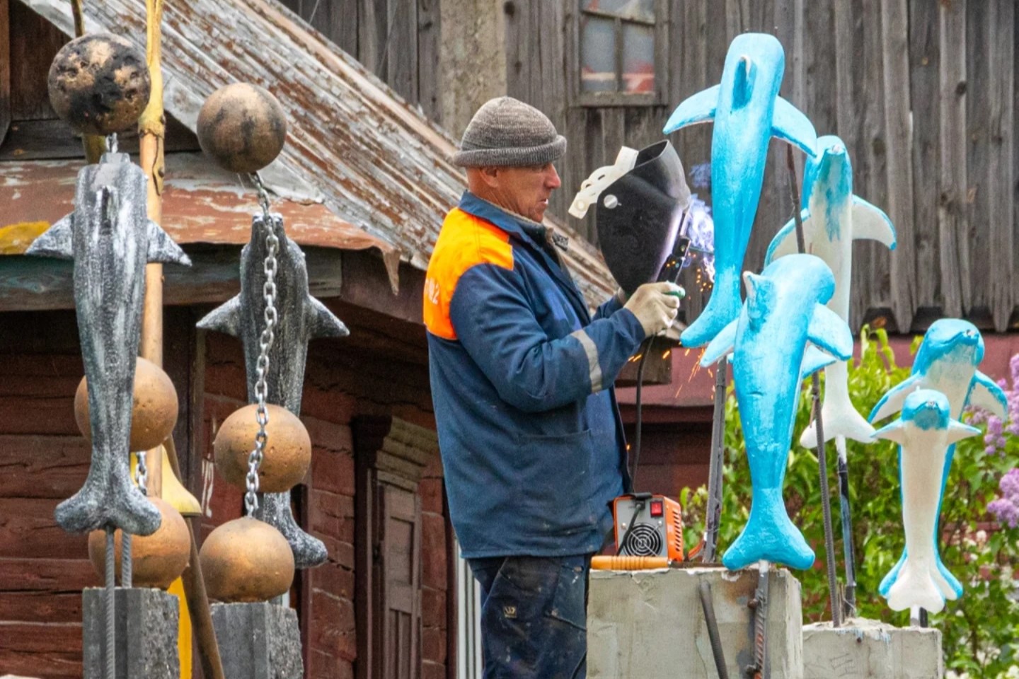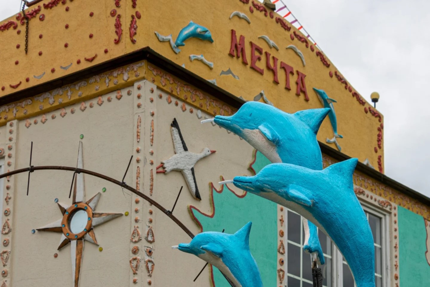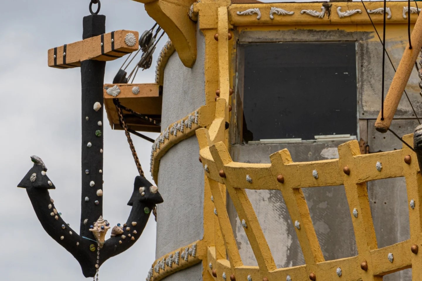 Григорий Косько, автор этого шедевра,постоянно усовершенствует проект. Сейчас, например, он монтирует дельфинов над воротами, добавляя новые детали к уже впечатляющему кораблю.