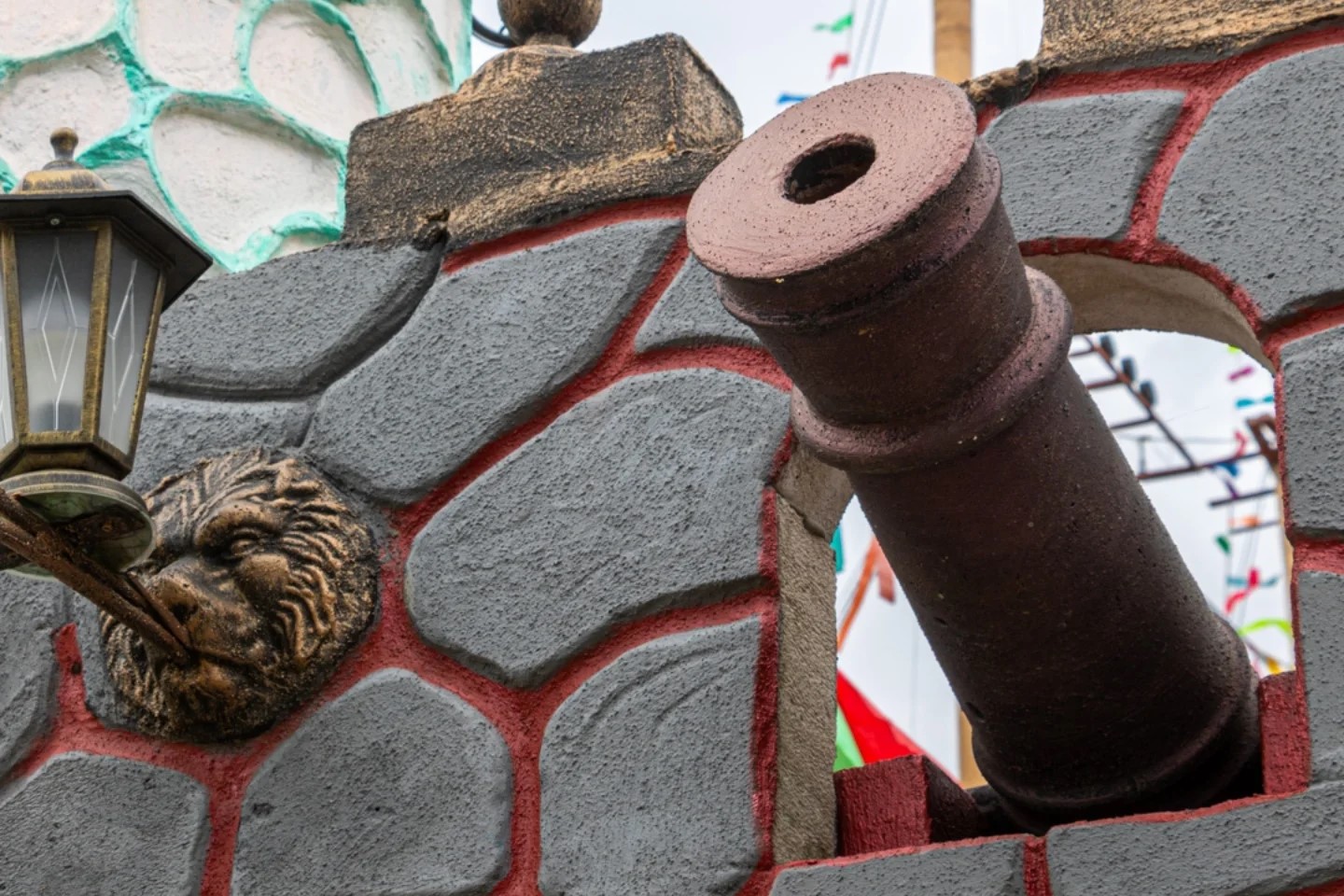 Рядом — форт с маяком, тоже ручной работы, который обороняют чугунные орудия. Это не просто декоративные элементы — многие из них отлиты по историческим образцам.