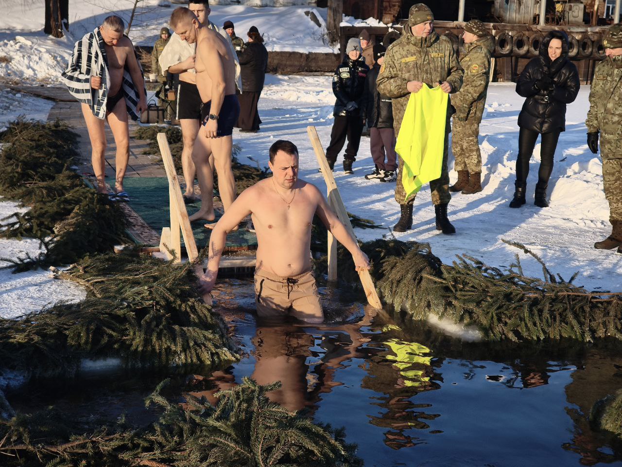 После молитвы военнослужащие совершили омовение в ледяной воде. Ритуал прошёл организованно, с соблюдением всех мер безопасности.