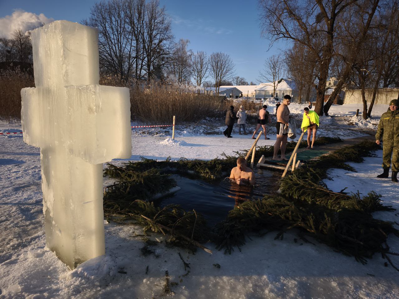Праздничную службу и чин освящения воды совершил настоятель Свято-Михайловского храма отец Василий. Он отслужил молебен, окропил освящённой водой всех присутствующих и благословил военнослужащих на предстоящее омовение.