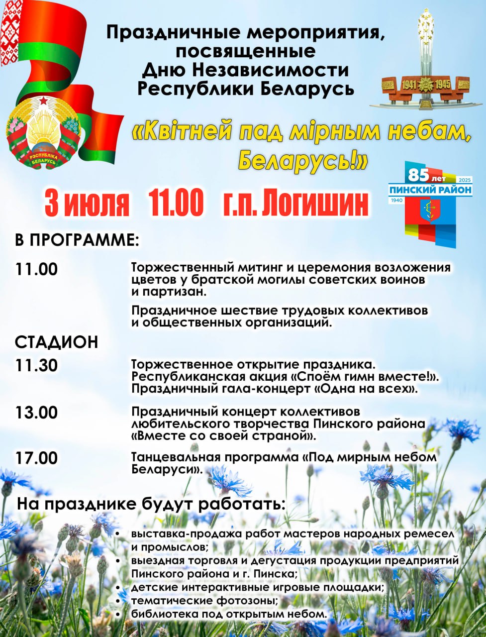 Пинский район будет отмечать День Независимости в Логишине