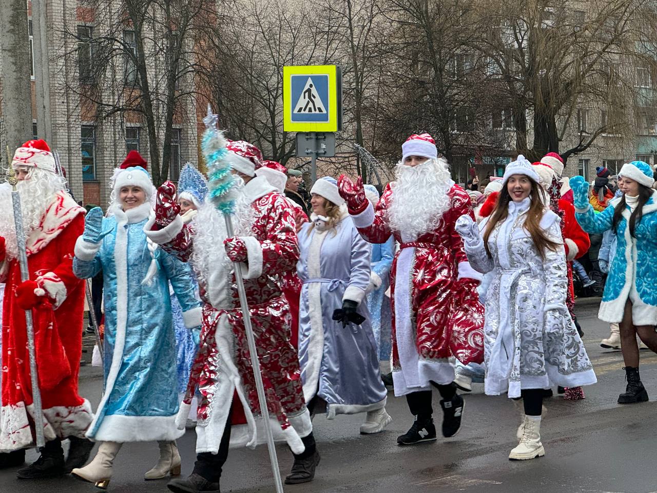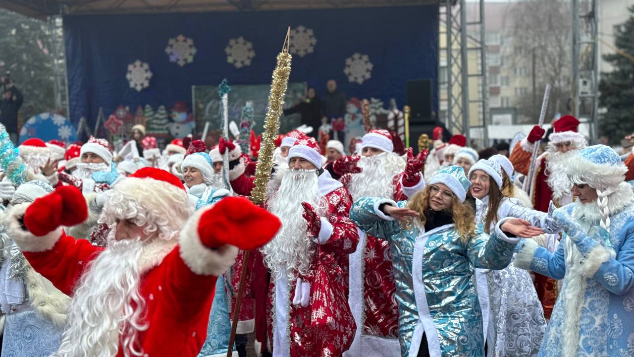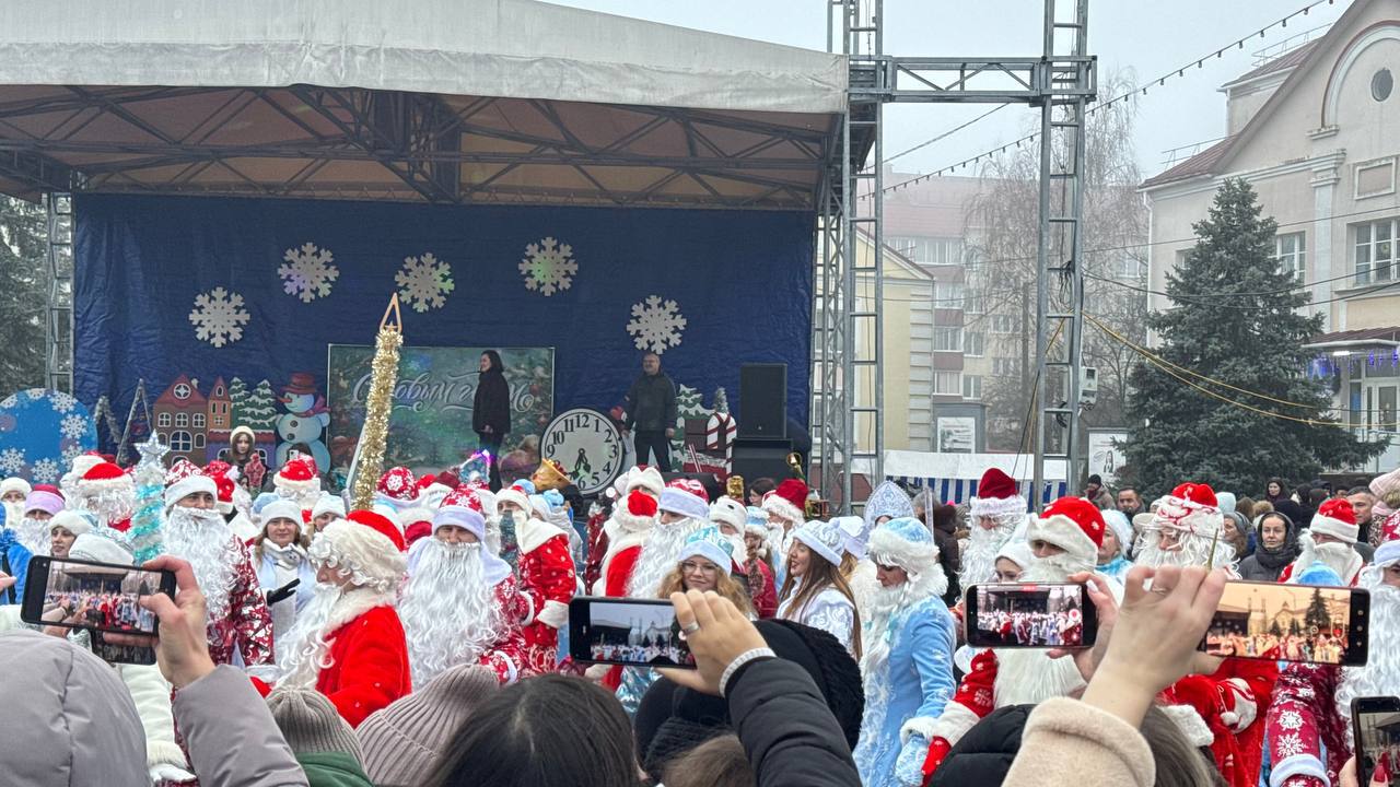 К площади по улице Красной шествием прошли Деды Морозы и другие новогодние персонажи. Кортежем проехали украшенные автомобили от местных предприятий и организаций. Всю эту феерию приветствовали выстроившиеся вдоль улицы горожане.