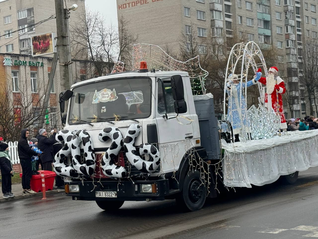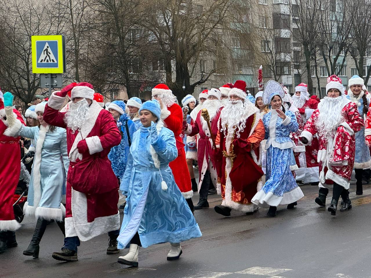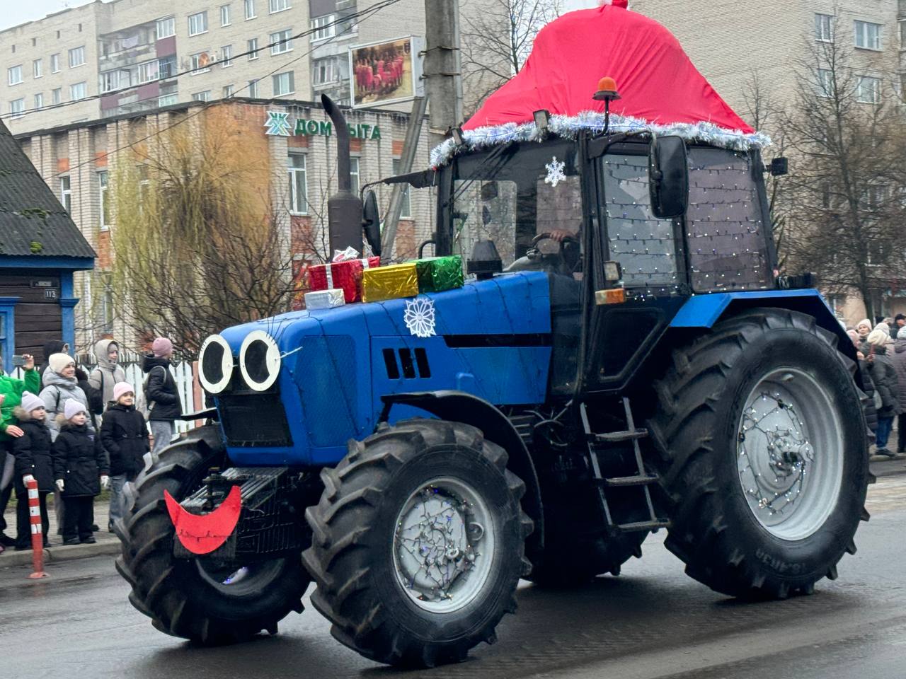 К площади по улице Красной шествием прошли Деды Морозы и другие новогодние персонажи. Кортежем проехали украшенные автомобили от местных предприятий и организаций. Всю эту феерию приветствовали выстроившиеся вдоль улицы горожане.