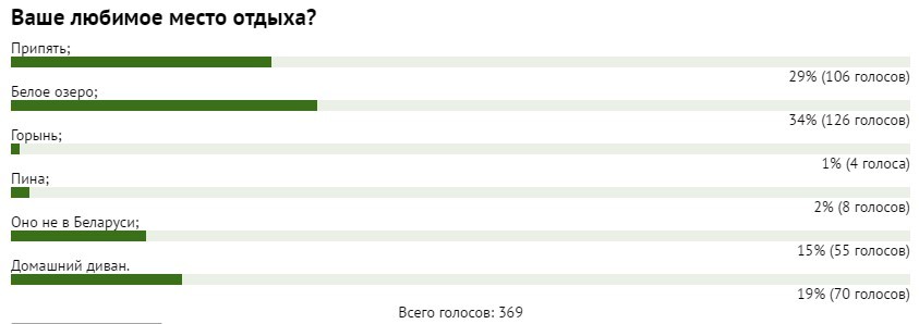 А вот любителей отдыха на Пине и Горыни нашлось совсем не много –2 и 1 процент соответственно.