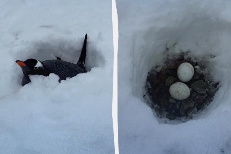 «Многие субантарктические пингвины возле «Вернадского» уже отложили яйца, поэтому сидеть на гнездах им приходится даже в высоких снежных сугробах. Как этой маме или папе на видео», — рассказали ученые.
