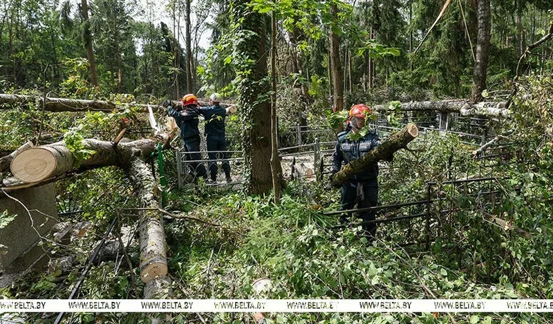 Для наведения порядка на кладбища уже направили 90 спасателей и 80 курсантов Университета гражданской защиты, а также сотрудников МЧС из Минска и области, которые имеют специальный допуск к работе с бензопилами. Еще около 105 человек, в том числе будущие и действующие спасатели, присоединятся к работе.