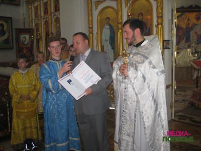 Во время божественной литургии настоятель храма иерей Сергий Крышталь получил почётную грамоту Лунинецкого райсовета депутатов из рук председателя Виктора Рафаловича.