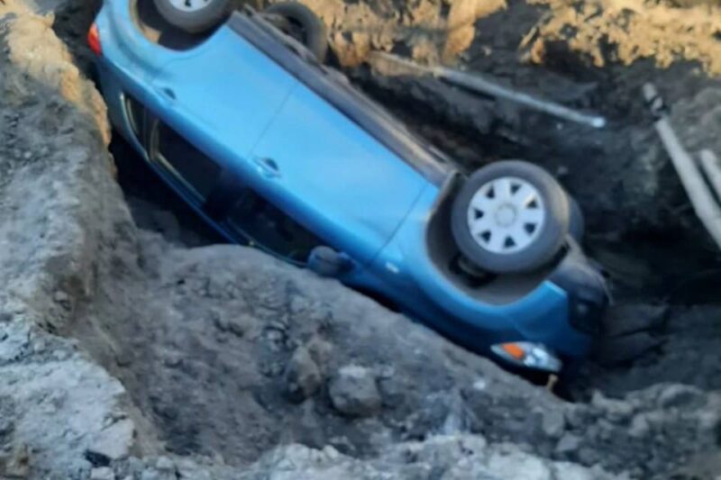 В этот момент, 64-летняя женщина, управляя автомобилем «Mitsubishi», из-за ослепления солнцем, не справилась с управлением и въехала в яму. Автомобиль опрокинулся, получил механические повреждения, водитель не пострадала.