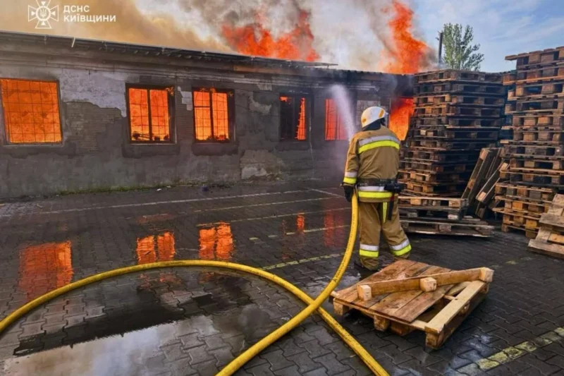 На Киевщине также загорелось предприятие, огонь охватил 8000 кв. м его площади. Были травмированы два человека.