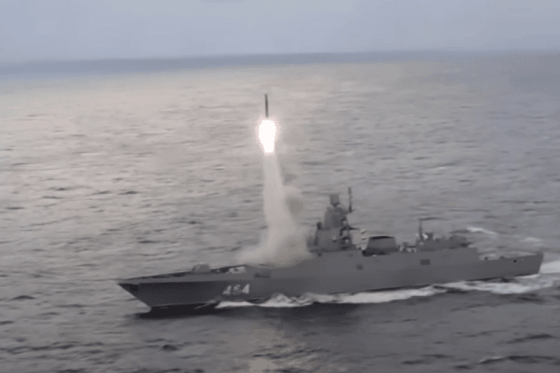 Минобороны РФ опубликовало кадры пуска гиперзвуковой ракеты «Циркон» с фрегата Северного флота «Адмирал Головко» по цели в Баренцевом море. На кадрах видно, как ракета стартует вертикально с фрегата, а затем уходит под углом к горизонту.