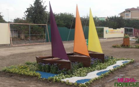 Гигантская стрекоза, чайный сервиз, каравелла с алыми парусами —  такие цветочные композиции появились на обновлённом участке улицы Первомайской.
