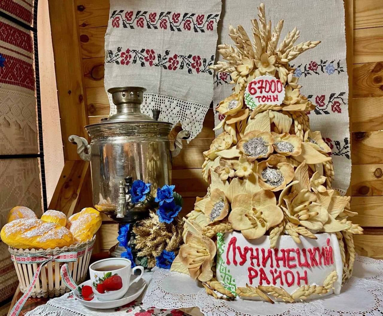 На каравае Луненецкого района отражена цифра собранного в этом году зерна.