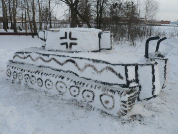Не трудно догадаться, почему слепили из снега именно танк – онлайн-игра «В мире Танков» проводит акцию "Танковик 2013".